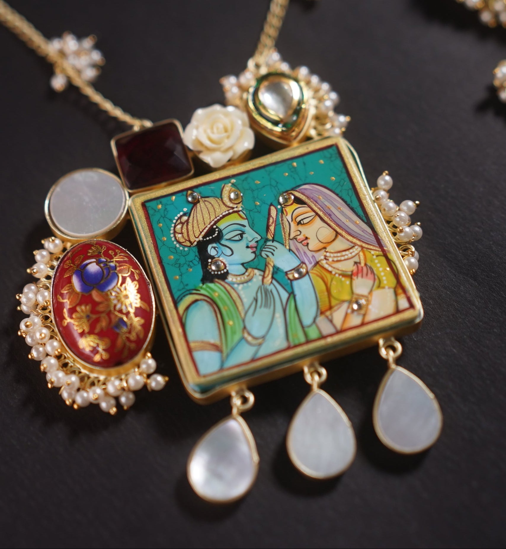 Gothica Roopkatha Handmade Necklace set with hand painting and meena and stone work