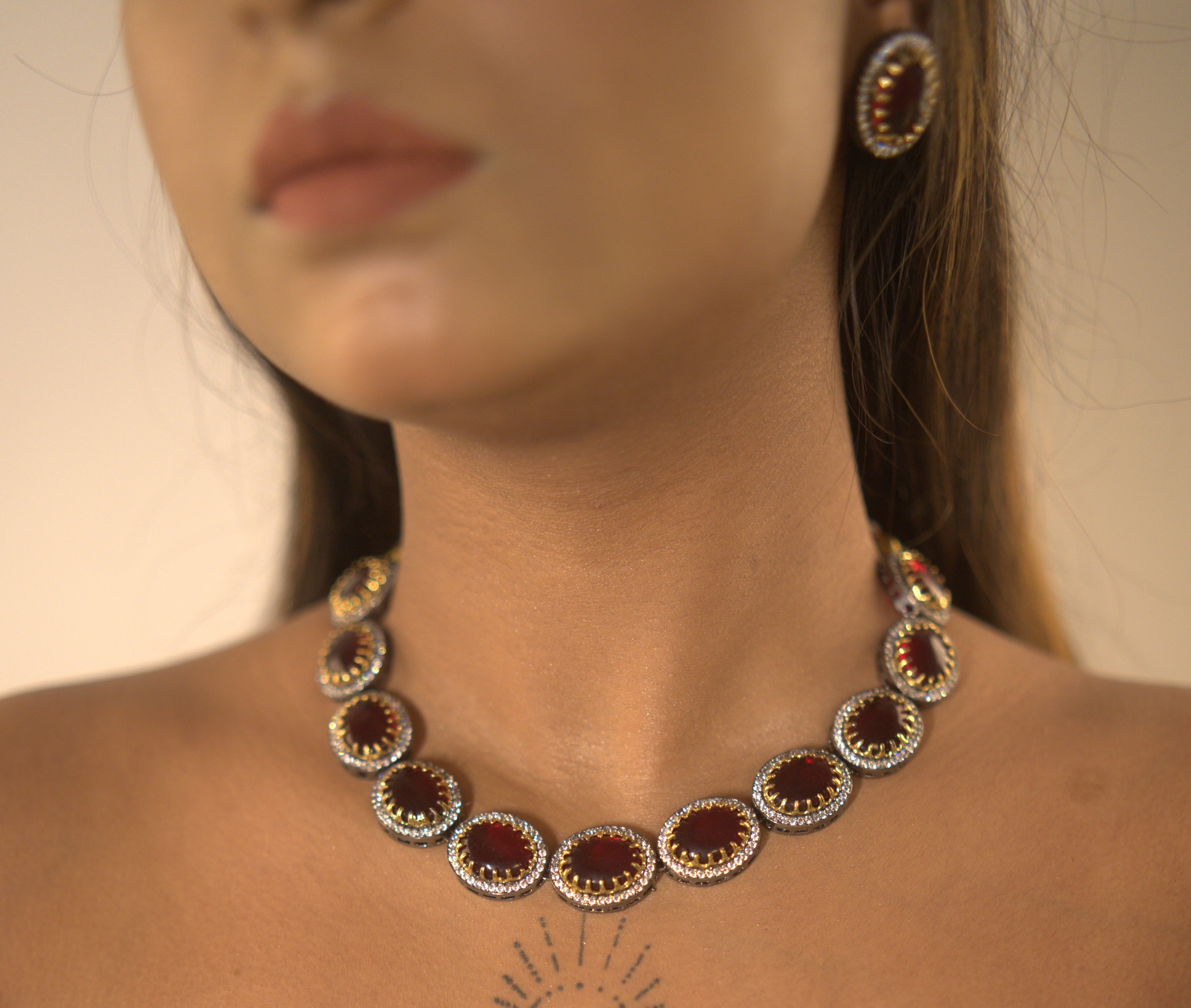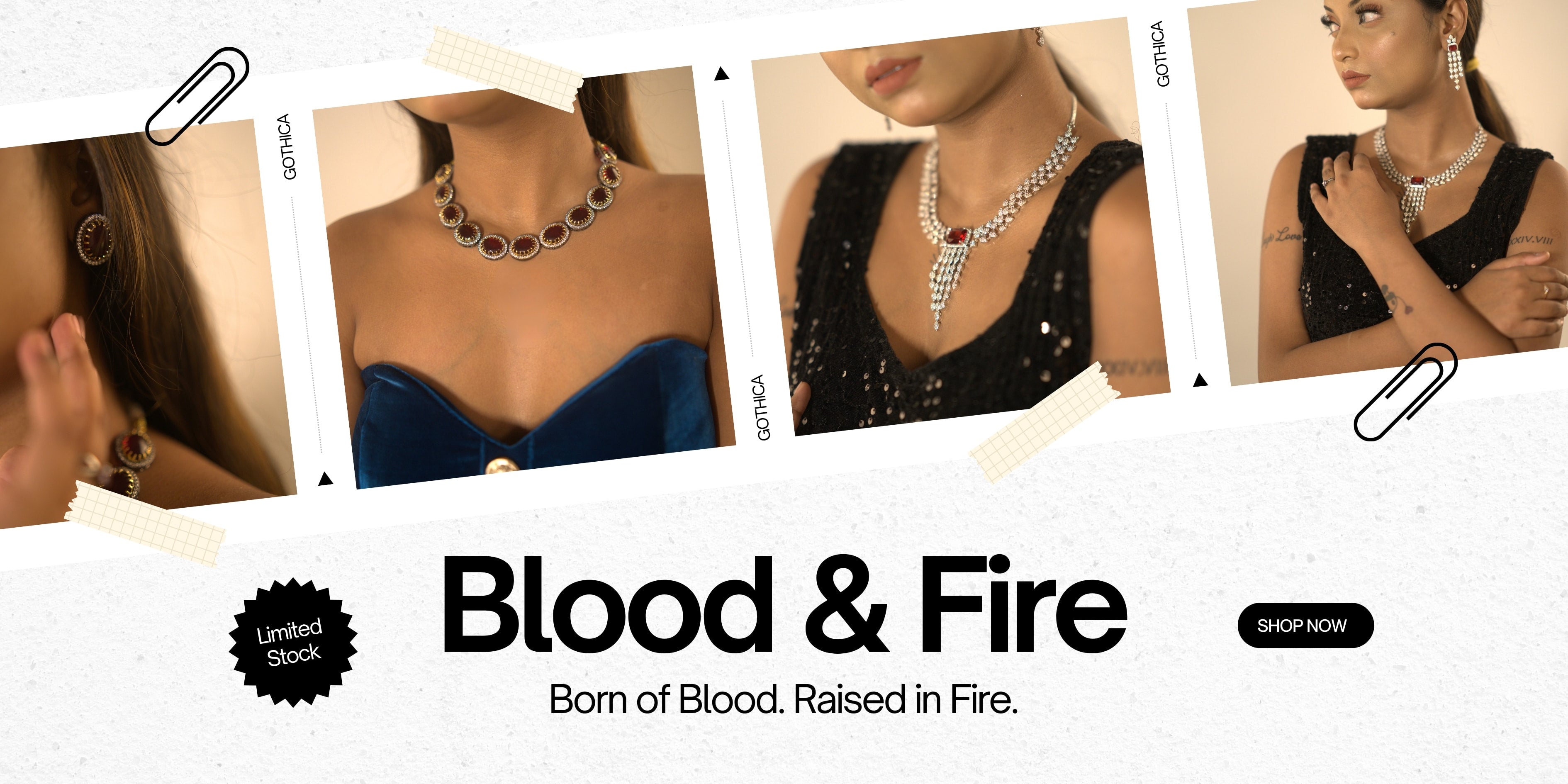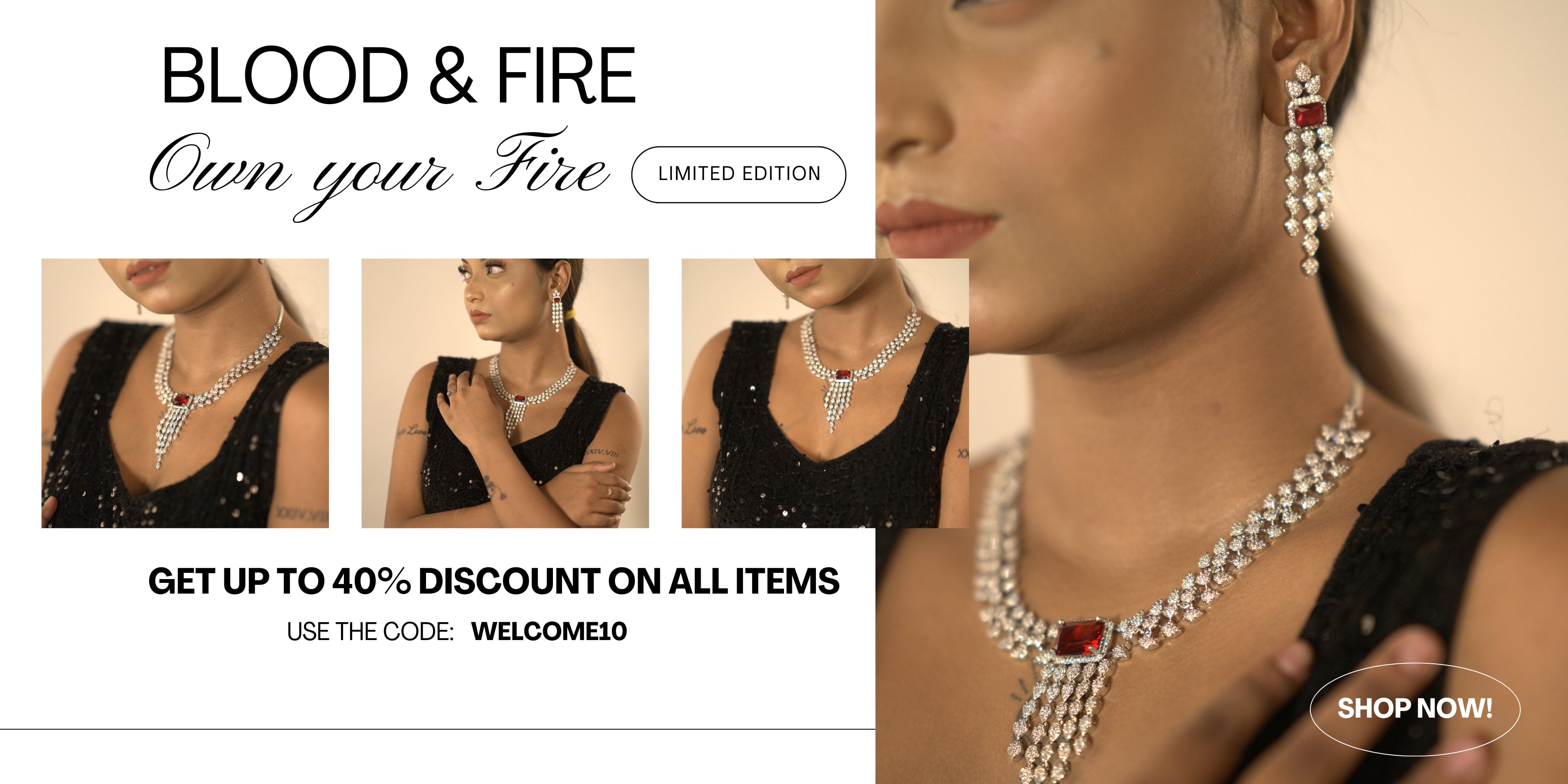 Gothica The Bloodflame Necklace set featuring AAA Quality American Diamonds with rhodium plating